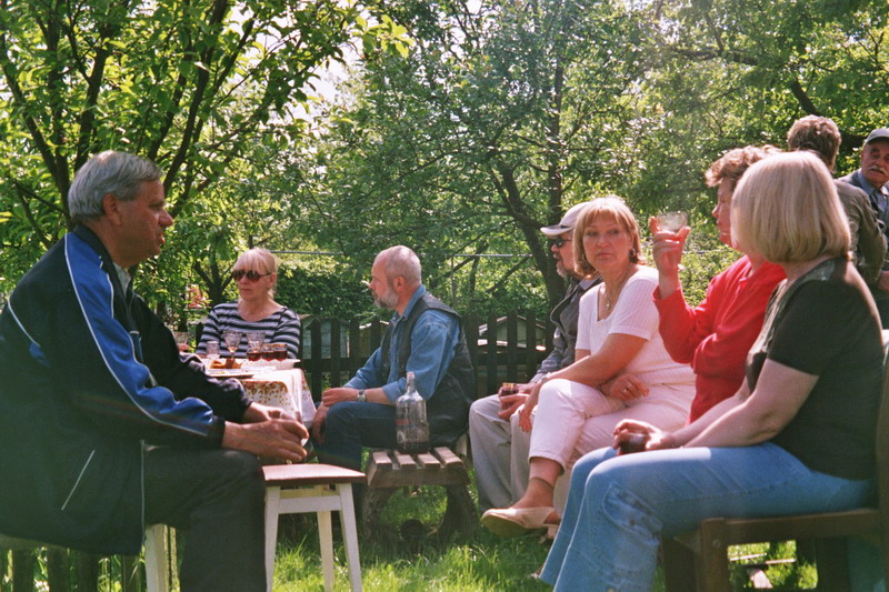 W przydomowym ogrodzie Pana Antoniego mieliśmy okazję skosztować wina własnej roboty i wspaniałego ciasta, również własnego wypieku.