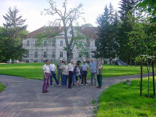 Przywitanie z gospodarzem nastąpiło na podjeździe do pałacu na tle soczystej majowej zieleni