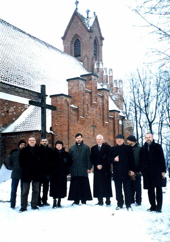 Uczestnicy spotkania po zwiedzeniu wystawy udali się do kościoła i na rekonesans w celu lokalizacji kamienia, który kiedyś stał przy kościele.